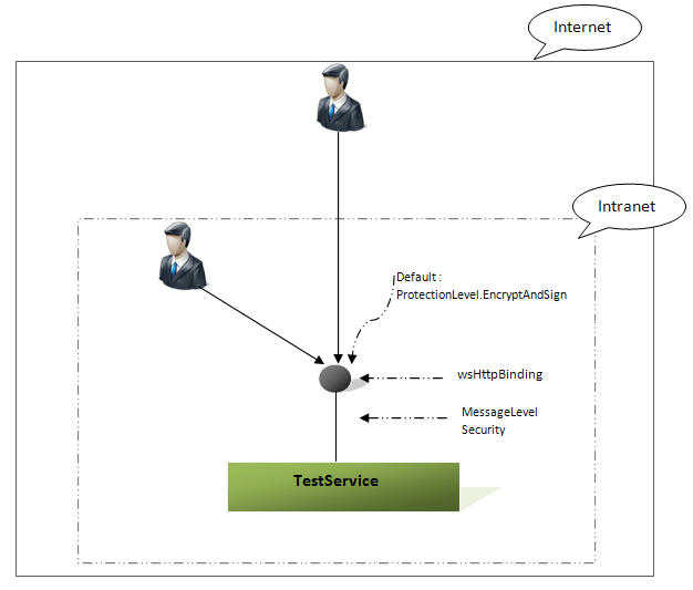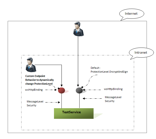 Thus, what we need is to make two different endpoints to work with different ProtectionLevel, and using custom endpoint behavior, it can be achieved. Thus, the internet users will be able to use the wsHttpBinding with default ProtectionLevel, while the intranet users use the less secure– ProtectionLevel.Sign. The next section shows how to achieve this.
